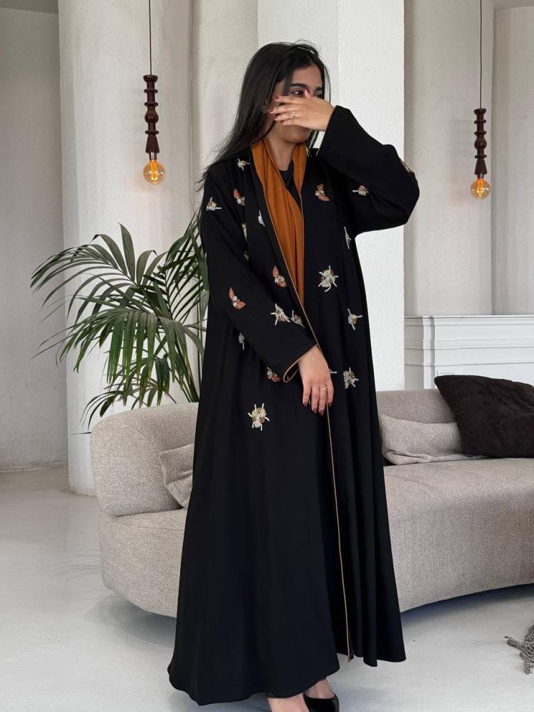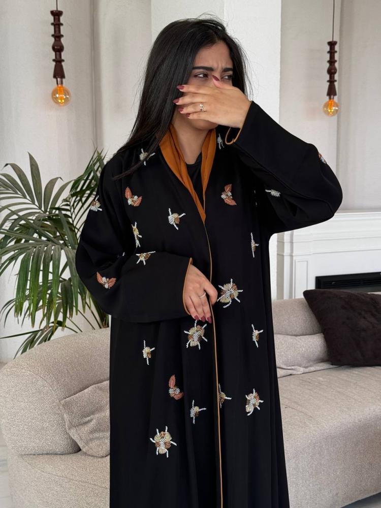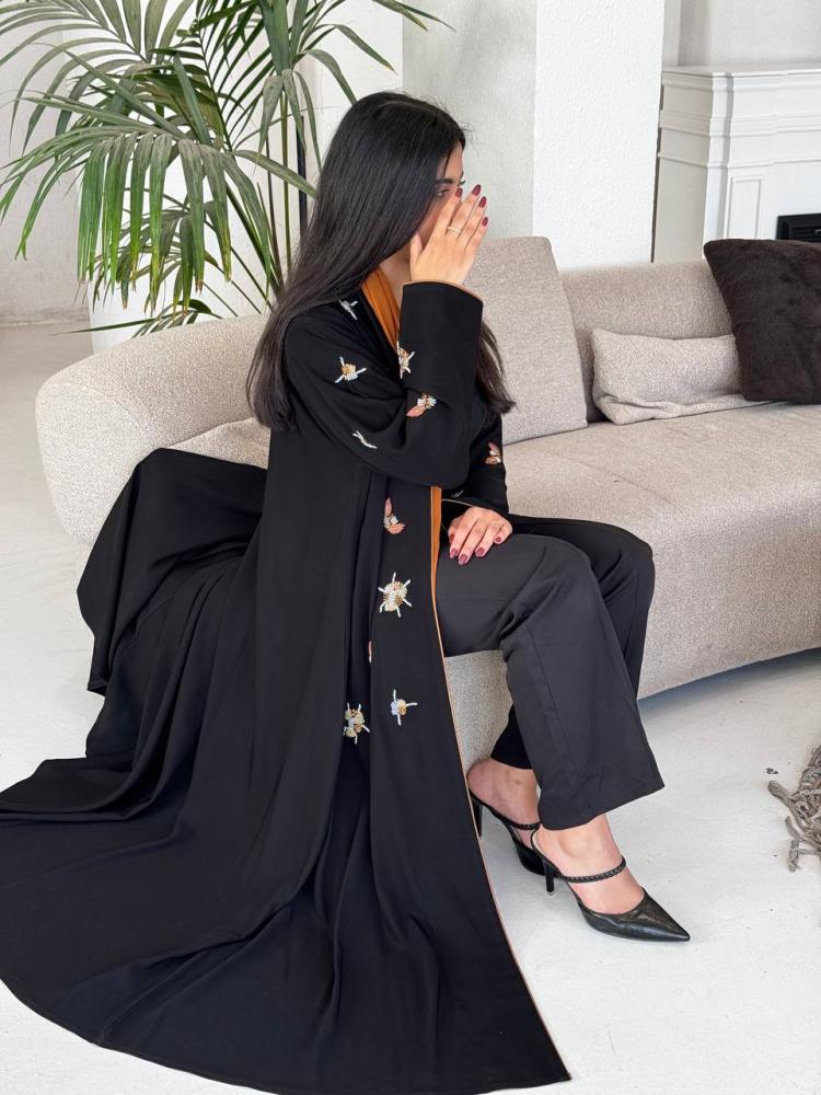 تألقي بأناقة لا مثيل لها مع هذه العباية من كريب سلسال، تتميز بقصة استريت وشك يدوي فاخر يجعلها الخيار المثالي للمناسبات الخاصة.